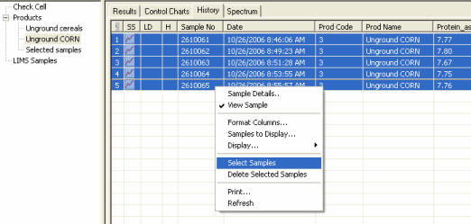 Products > History) and then sending them to Selected Samples