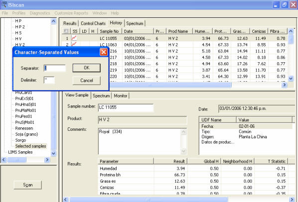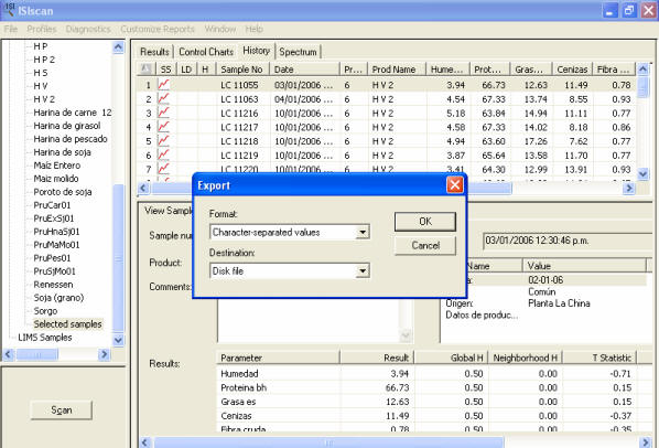 wich will be exported there is an option in ISIscan program that